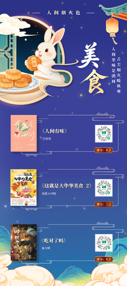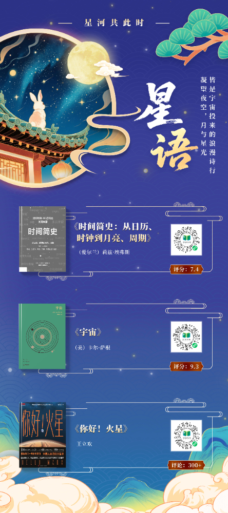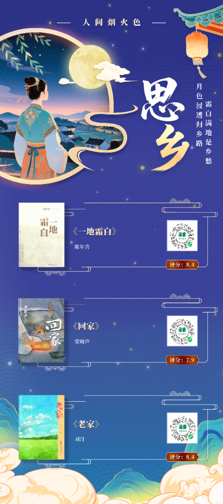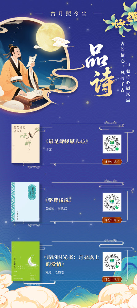 本书展以“月光”为文化符号,提炼“赏月”“思乡”“团圆”“美食”等十大中秋核心要素,构建“古月照今尘”“人间烟火色”“星河共此时”三重时空维度,串联起从古至今的中秋记忆,将传统习俗与现代生活、个人情感与家国情怀交织呈现,展现中秋文化的精神内核。展图数量共计 11 张,以书卷为载体,以阅读为纽带,在数字时代重拾传统文化的温度与厚度,打造一场跨越时空的诗意书展。