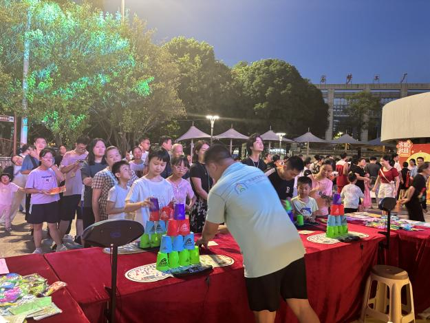 中秋月明,灯影摇曳,猜谜区早已聚满了兴致勃勃的市民、游客。大家三五成群,或凝神细读谜面,或热烈讨论答案。谜题涵盖成语、地名、字形字义及动植物等民俗相关内容,从趣味文字游戏到生活常识联想,每一个谜底揭晓的瞬间,都让现场充满惊喜与欢笑。孩子们踮脚张望,大人含笑指点,文化的气息在欢声笑语中悄然流淌。