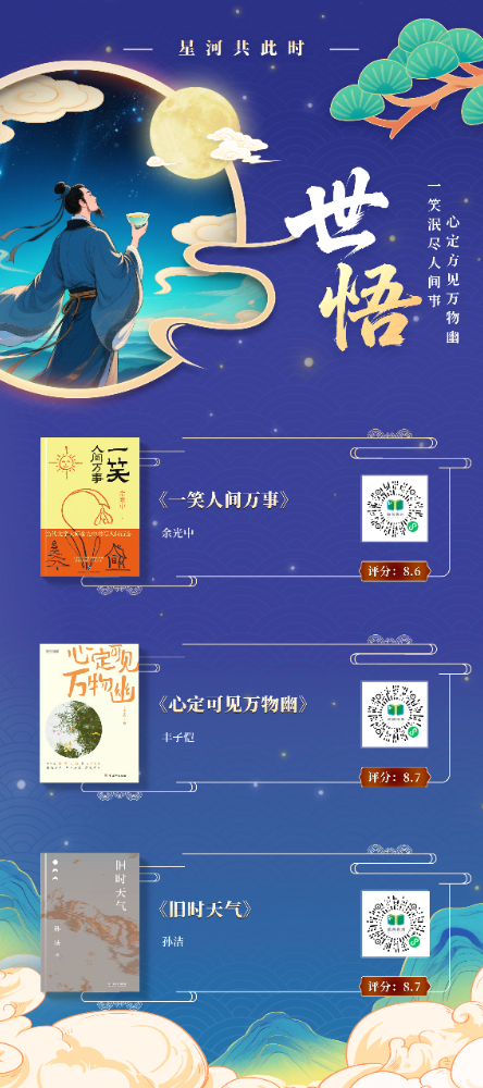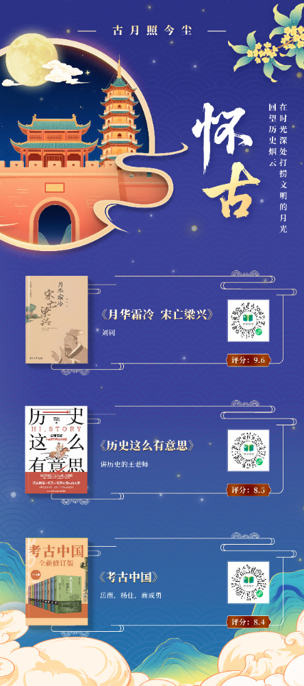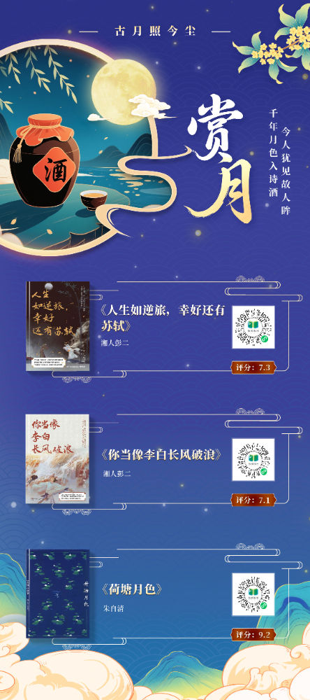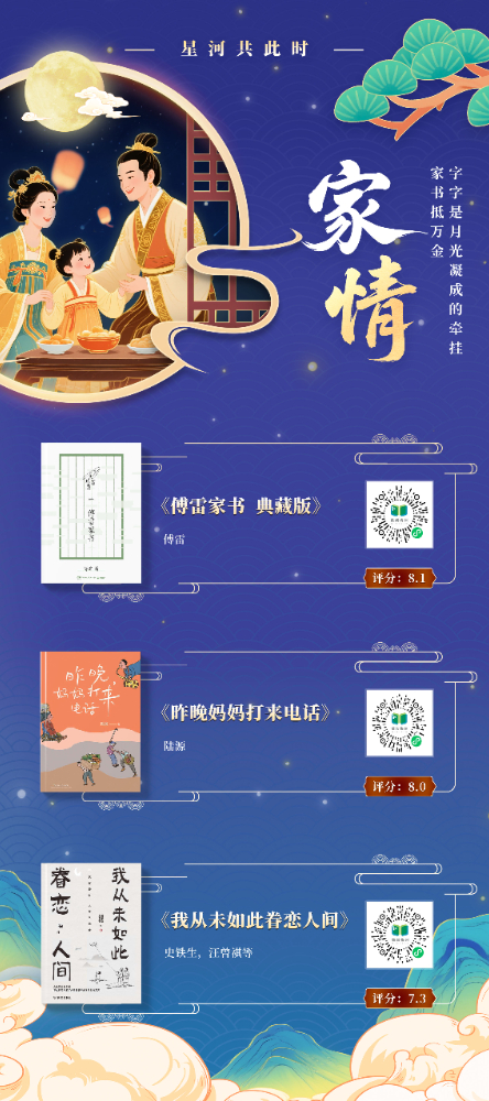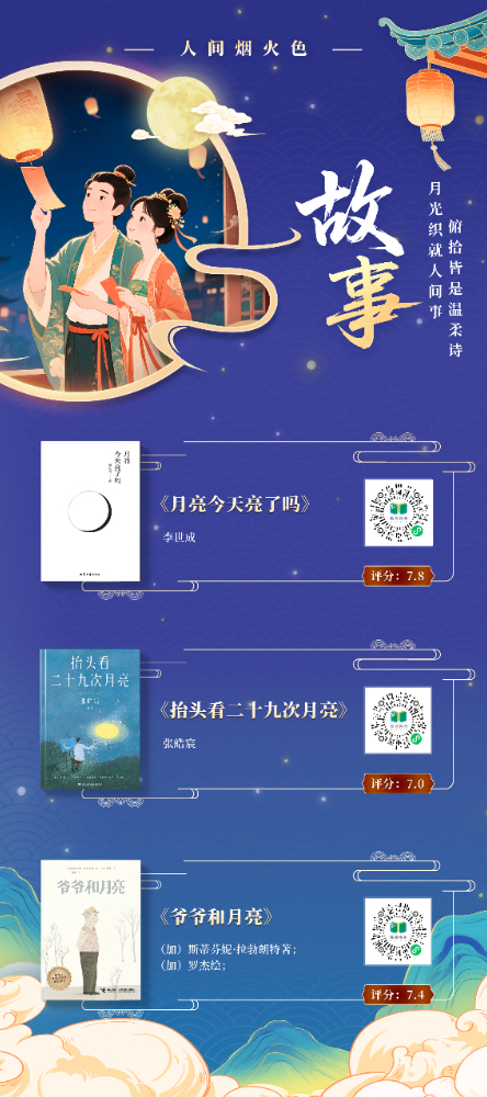 本书展以“月光”为文化符号,提炼“赏月”“思乡”“团圆”“美食”等十大中秋核心要素,构建“古月照今尘”“人间烟火色”“星河共此时”三重时空维度,串联起从古至今的中秋记忆,将传统习俗与现代生活、个人情感与家国情怀交织呈现,展现中秋文化的精神内核。展图数量共计 11 张,以书卷为载体,以阅读为纽带,在数字时代重拾传统文化的温度与厚度,打造一场跨越时空的诗意书展。