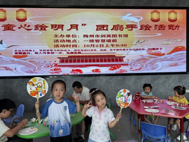 10月2日上午,团扇手绘活动再度开展。此次活动以中秋为主题,团扇图案换上玉兔、桂树、月亮等经典元素。孩子们专注蘸取彩笔,为玉兔添毛色、给圆月涂光晕、为月饼描纹路,家长在旁选色递笔,氛围格外温馨。活动让孩子们在动手中沉浸式感受中秋魅力,更在心底种下热爱中华优秀传统文化的种子。