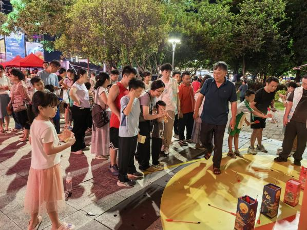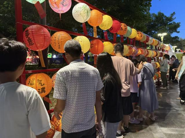 中秋月明,灯影摇曳,猜谜区早已聚满了兴致勃勃的市民、游客。大家三五成群,或凝神细读谜面,或热烈讨论答案。谜题涵盖成语、地名、字形字义及动植物等民俗相关内容,从趣味文字游戏到生活常识联想,每一个谜底揭晓的瞬间,都让现场充满惊喜与欢笑。孩子们踮脚张望,大人含笑指点,文化的气息在欢声笑语中悄然流淌。