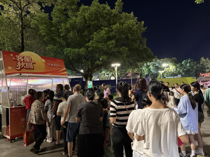 玉兔套月饼区五彩套圈纷飞,大家瞄准摆放整齐的月饼模型,一次次抛出希望。“差一点!”“套中啦!”惊呼与笑声此起彼伏,不管是孩子还是大人,都沉浸在这经典游戏的乐趣中。每当套圈稳稳落下,成功者脸上绽放出灿烂的笑容。简单的小游戏,不仅带来了收获的喜悦,更串联起一份份节日的欢愉与满足。