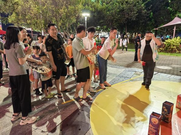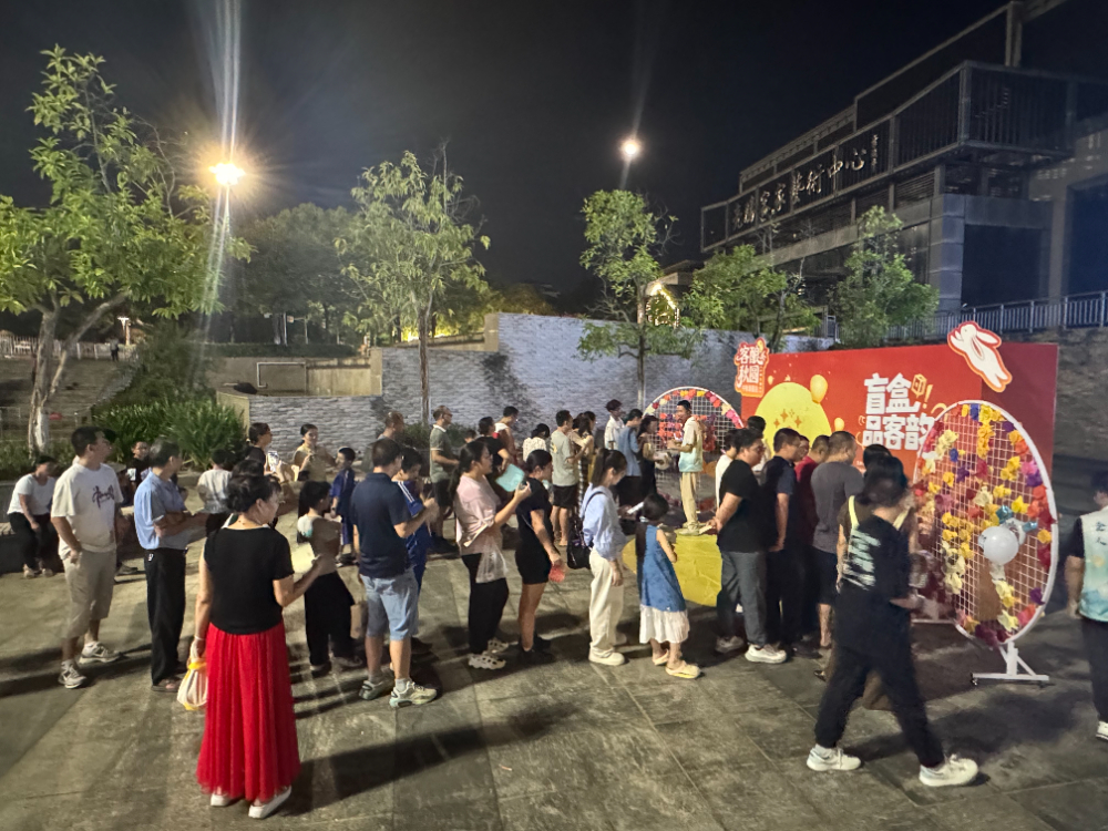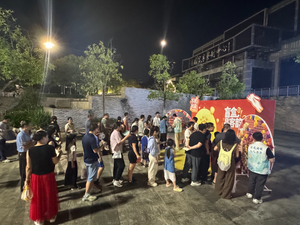 盲盒抽取区始终洋溢着好奇与惊喜的氛围,参与者们兴奋地打开一个个神秘小盒,跃跃欲试地迎接知识闯关。题目从客家山歌到梅州美食,从历史名人到非遗技艺,每一次答题都是一次对客家文化的深度触摸。大家在玩中学、在乐中悟,浓浓客韵伴随笑语声声,浸润了每个人的中秋时光。