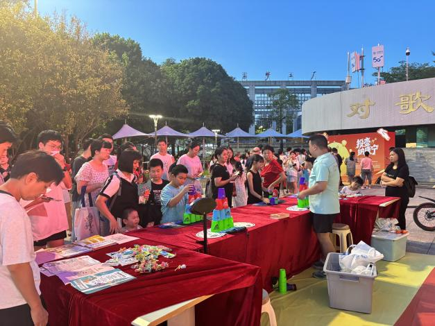叠杯区也吸引了众多空间建构的爱好者。孩子们与父母一同观察、讨论,小心翼翼地堆叠手中的彩色杯子,尝试还原各种精巧的造型。成功时相视而笑,失误时也毫不气馁,重新再来。整个过程充满了探索的乐趣,让每个人在亲手创造中感受着结构与空间的奇妙。