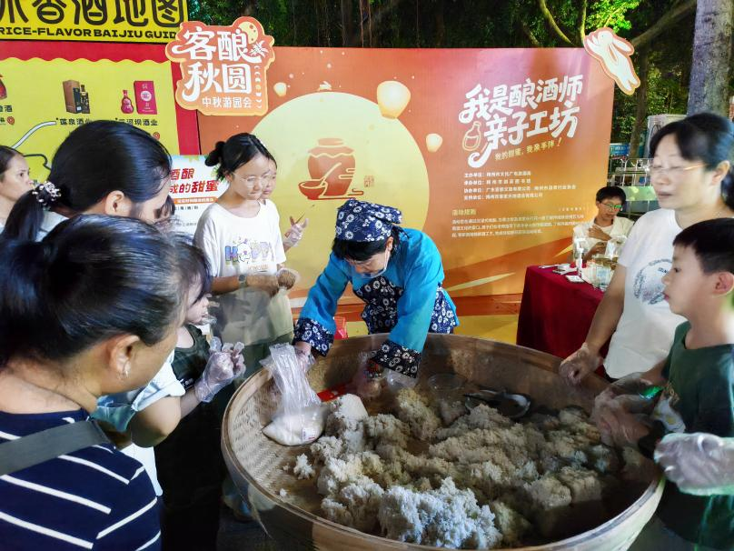 酿酒工坊里飘着淡淡的甜香,亲子家庭在老师指导下亲手制作甜酒酿。孩子们小心搅拌,家长从旁协助,一问一答中了解了发酵的奥秘。这场沉浸式体验不仅增进了亲子情感,更让岭南酒文化在实践与互动中悄然传承,温馨满满,收获满满。